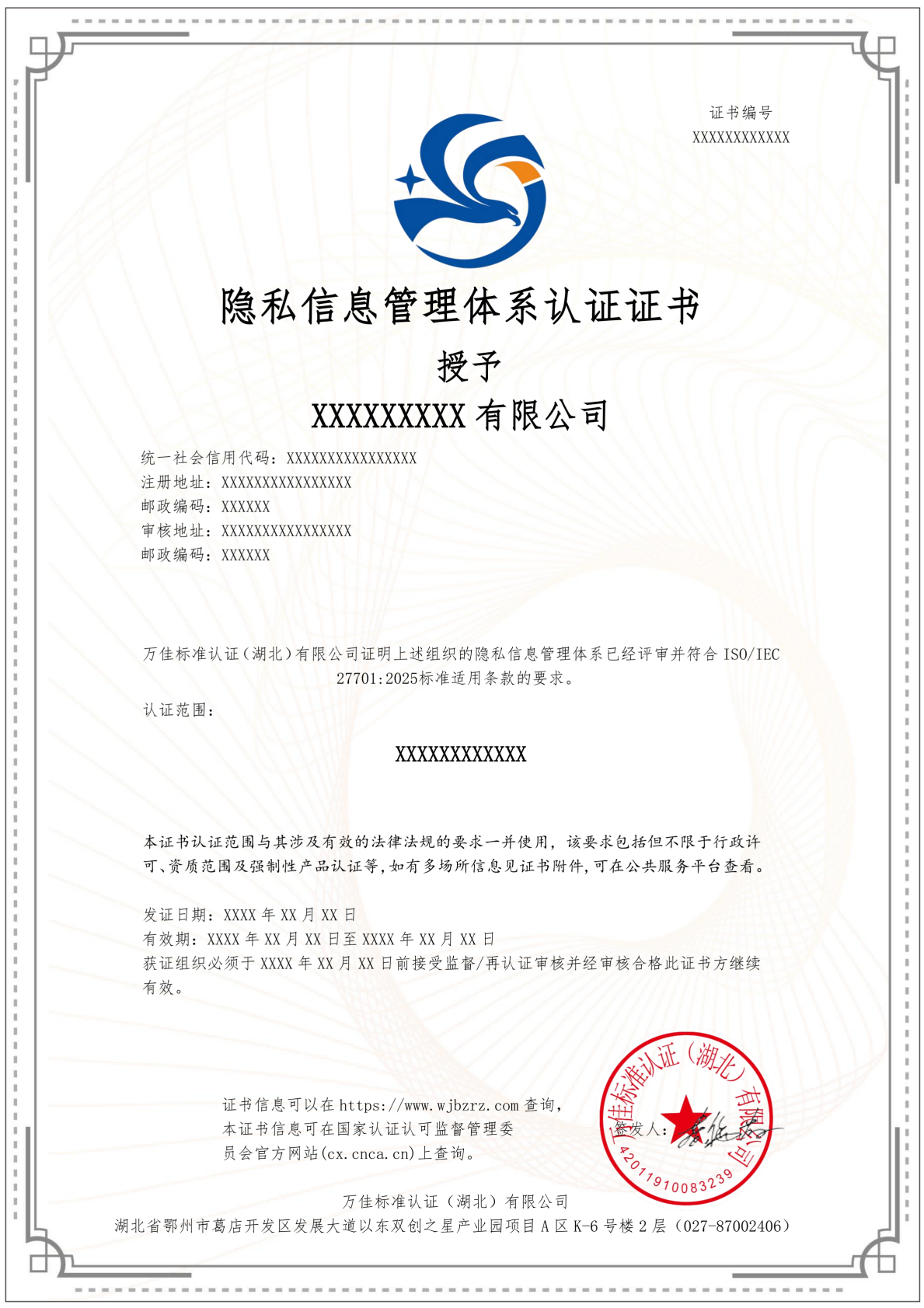 点击下载:WJBZ-JS-102《隐私信息管理体系认证规则》